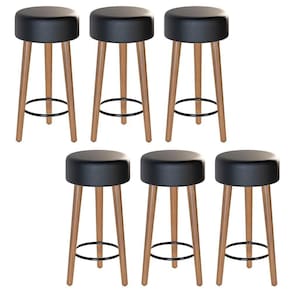 Kit 06 Banquetas Baixa Cozinha Paris Estofada D-33 Pés De Madeira Rosqueáveis Corano Preto - Desk Design