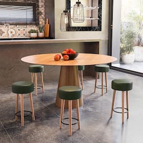 Que tal a Banqueta Baixa Para Cozinha Paris Estofada D-33 com Pés de Madeira Rosqueáveis?