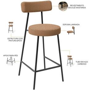 Amplamente moderna, dispondo de muito realce e design singular, a Banqueta Baixa Para Cozinha Sala De Jantar Bar Bancada Milão L02 Bouclê Mostarda - Lyam Decor vem com a personalidade e elegância que sua decoração merece! Estruturada em aço carbono, contrasta lindamente com o encosto e assento estofados, cabe mencionar ainda seu revestimento em Bouclê, é confeccionada por materiais de excelente qualidade, extremamente resistentes e aconchegantes. Possui altura ideal, garantindo o encaixe perfeito no ambiente, otimizando seu espaço e promovendo máximo conforto. Pode ser disposta em bancada, cozinha americana, área gourmet ou home bar, as possibilidades são infinitas e as combinações ficarão perfeitas. Adquira já a sua!!