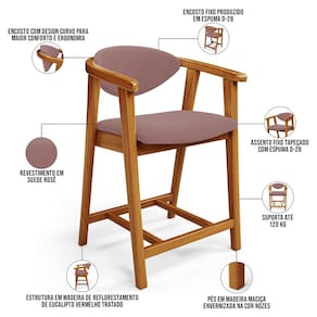 Kit 06 Banquetas Baixa Para Cozinha Sala Jantar Bancada Cecília L02 Suede Rosê - Lyam Decor - Rosa