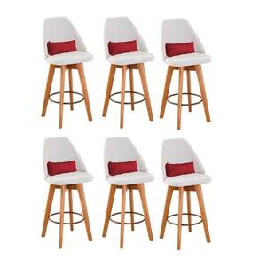 Kit 06 Banquetas Alta Maya Giratória Com Encosto Linho Bege Claro E Almofada Corino Vermelho - Gat Magazine Banqueta Maya Giratória - GAT MAGAZINE A Banqueta Maya possui assento e pés em madeira eucalipto com sistema giratório! Os pés contam com um reforço que proporciona um suporte de peso de até 120 Kgs.O assento é revestido com espuma D-23. Além de bonita e charmosa, vai trazer para seu ambiente elegância e proporcionará conforto para sua família e amigos nos momentos de lazer.