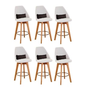 Kit 06 Banquetas Alta Maya Giratória Com Encosto Gourmet Linho Bege E Almofada Sintético Marrom - Gat Magazine