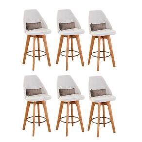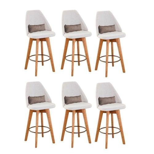 Kit 06 Banquetas Alta Maya Giratória Com Encosto Gourmet Linho Bege E Almofada Suede Bege - Gat Magazine Banqueta Maya Giratória - GAT MAGAZINE A Banqueta Maya possui assento e pés em madeira eucalipto com sistema giratório! Os pés contam com um reforço que proporciona um suporte de peso de até 120 Kgs.O assento é revestido com espuma D-23. Além de bonita e charmosa, vai trazer para seu ambiente elegância e proporcionará conforto para sua família e amigos nos momentos de lazer.