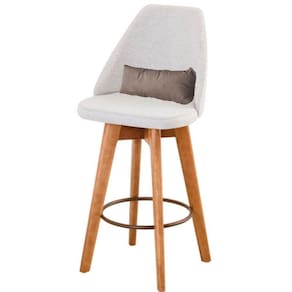- Assento revestido com espuma D-23; - Base Giratória em madeira de Eucalipto; - Arco redondo em ferro; - Assento em tecido; - Suporta até 120kg.