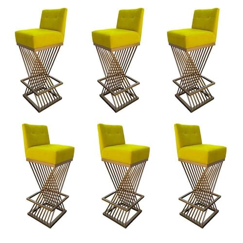 Kit 06 Banquetas Luma Base De Ferro Sued Amarelo D`classe Decor