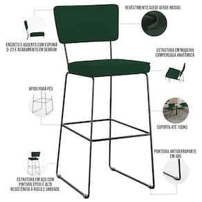 O espetáculo que é o Kit 06 Banquetas Alta Bar Cozinha Sala De Jantar Fixa Allana L02 Suede Verde Musgo - Lyam Decor vem para agregar ainda mais valor na decoração da sua casa. Sua estrutura em aço remete-nos ao estilo industrial que surgiu em Nova York no século XX, já o assento e encosto estofados trazem equilíbrio e conforto criando a combinação perfeita para o ambiente. Podendo ser disposta em bancada, cozinha americana, espaço gourmet ou home bar, ela se destaca com muita elegância e presença. Conta com materiais de máxima qualidade e está sempre pronta para recepcionar família e amigos de forma agradável. Você e seu lar merecem, aproveite!!