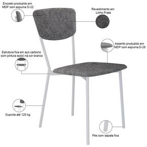 Material: Estrutura em Aço e MDP, Revestimento em Linho e espuma | ProductLength: 53 cm | ColorSupplier: Prata | ColorSimple: Prata | ProductWidth: 43 cm | ProductWarranty: 90 dias após o recebimento do produto | Model: Village | Color: Prata | ColorFamily: Prata | ProductWeight: 39 kg | OriginCountry: Brasil | SupplierSimpleName: Kit 06 Cadeira Para Sala de Jantar Village Branco C01 Linho Prata - Lyam Decor | ProductHeight: 249 cm | MaterialFamily: Aço, MDP, Linho e espuma | ProductContents: 06 Cadeiras | OriginState: PR | SizeDescription: Altura: 249 cm x Largura: 43 cm x Profundidade: 53 cm | ProductInstructions: Produto para uso em ambiente interno, nao devendo ficar exposto ao sol, calor e umidade excessivos. | Cor: Cinza
