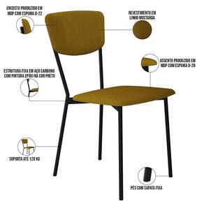 Color: Amarelo | ColorFamily: Amarelo | ColorSimple: Amarelo | ColorSupplier: Mostarda | Material: Estrutura em Aço, MDP, Revestimento em Linho e espuma | MaterialFamily: Aço, MDP, Linho e espuma | Model: Village | OriginCountry: Brasil | OriginState: PR | ProductContents: 06 Cadeiras | ProductHeight: 249 cm | ProductInstructions: Produto para uso em ambiente interno, nao devendo ficar exposto ao sol, calor e umidade excessivos. | ProductLength: 53 cm | ProductWarranty: 90 dias após o recebimento do produto | ProductWeight: 39 kg | ProductWidth: 43 cm | SizeDescription: Altura: 249 cm x Largura: 43 cm x Profundidade: 53cm | SupplierSimpleName: Kit 06 Cadeira Para Sala de Jantar Village Preto C01 Linho Mostarda - Lyam Decor