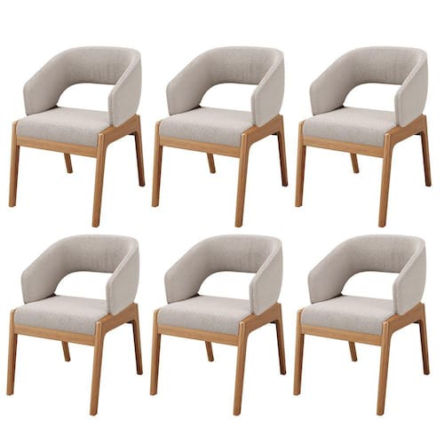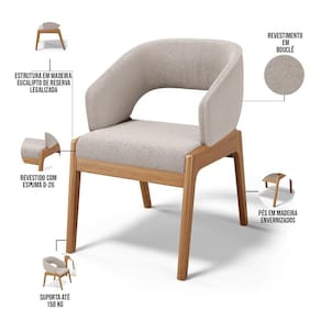Kit 06 Cadeiras de Jantar e Estar Living Estofada Lince L02 Bouclê Bege - Lyam Decor - Bege Claro