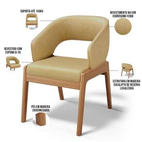Características: Estrutura de Madeira de Eucalipto tratado de reserva legalizada, correto ecologicamente. Produto revestido com espuma D-26. Revestimento em Couríssimo na cor Fend. Pés em Madeira envernizados. Suporta até 150 kg por assento.