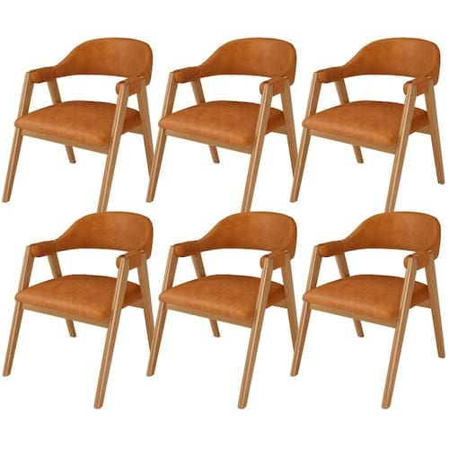 Color: Laranja | Firmeza: Firme | ProductInstructions: Produto para uso em ambiente interno, nao devendo ficar exposto ao sol, calor e umidade excessivos. | ProductHeight: 243 cm | ProductWeight: 42 kg | Desenho do tecido: Liso | Cor da estrutura da cadeira: Madeira | Profundidade do assento: 47 cm | Altura da cadeira: 81 cm | Largura do assento: 53,5 cm | Profundidade da cadeira: 70 cm | Cor do assento: Canela | Material do estofamento: Couro sintético e espuma | É cadeira de balanço: Não | Espessura do assento: na | Largura da cadeira: 59,5 cm | Altura do assento a partir do solo: 47 cm | Peso máximo suportado: 150 Kg | Tempo de montagem: na | É dobrável: Não | É empilhável: Não | Requer montagem: Não | Cor: Canela | Cor do estofamento: Canela | Fabricante: Lyam Decor | Material: Estrutura em Madeira, Revestimento em Couro sintético e espuma | MaterialFamily: Madeira, couro sintético e espuma | Model: Nadja | OriginCountry: | OriginState: PR | ProductContents: 06 Cadeiras | SizeDescription: Altura: 243 cm x Largura: 60 cm x Profundidade: 70 cm | SupplierSimpleName: Kit 6 Cadeiras de Jantar e Estar Living Estofada Nadja L02 Couríssimo Canela - Lyam Decor | ProductLength: 70 cm | ProductWidth: 60 cm | ProductWarranty: 90 dias após o do produto