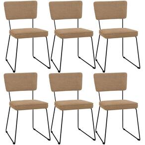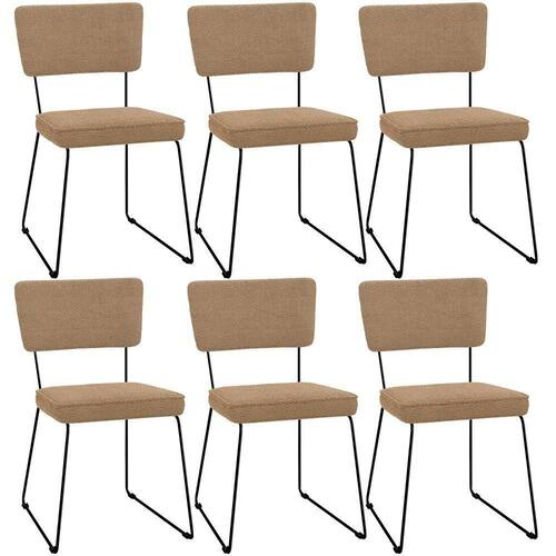 Kit 06 Cadeiras Decorativa Estofada Para Sala De Jantar Base Em Aço Allana L02 Bouclê Mostarda - Lyam Decor