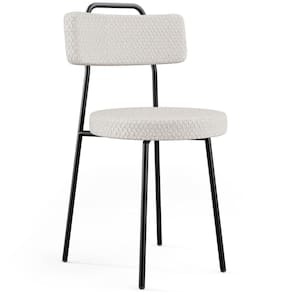 É cadeira de balanço: Não se aplica | Cor da estrutura da cadeira: Preto | Material do estofamento: Espuma Laminada | Desenho do tecido: Não se aplica | Cor do estofamento: Bouclê Cru | Cor do assento: Cru