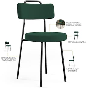 Amplamente moderna, dispondo de muito realce e design singular, o Kit 06 Cadeiras Decorativas Estofadas Para Sala De Jantar Barcelona L02 Bouclê Verde - Lyam Decor vem com a personalidade e elegância que sua decoração merece! Estruturada em aço carbono, contrasta lindamente com o encosto e assento estofados, cabe mencionar ainda seu revestimento em Couríssimo, é confeccionada por materiais de excelente qualidade, extremamente resistentes e aconchegantes.