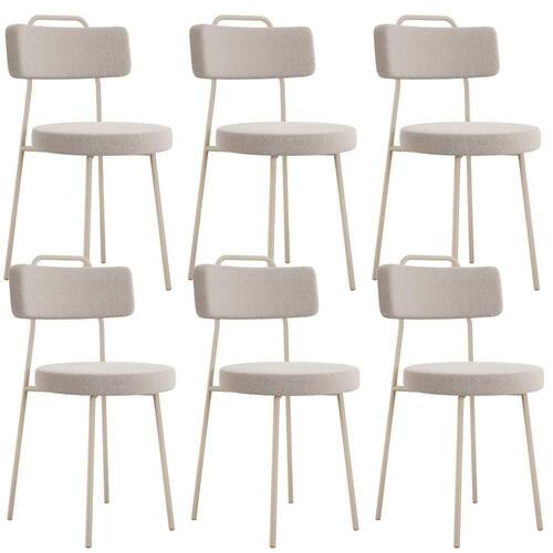 Altura da cadeira: 90cm | Altura do assento a partir do solo: 48 cm | Color: Creme | ColorFamily: Creme | ColorSimple: Creme | ColorSupplier: Creme | Cor: Creme | Cor da estrutura da cadeira: arana | Cor do assento: Canela | Cor do estofamento: Creme | Desenho do tecido: não contem desenho | É cadeira de balanço: Não | É dobrável: Não | É empilhável: Não | Espessura do assento: 6 cm | Fabricante: Lyam Decor | Firmeza: Sim | Largura da cadeira: 82cm | Largura do assento: 6 cm | Material: espuma laminada, aço carbono e plastico | Material do estofamento: Espuma Laminada | MaterialFamily: espuma laminada, aço carbono e plastico | Model: Barcelona | OriginCountry: Brasil | OriginState: PR | Peso máximo suportado: suporta até 120 kg | ProductContents: 6 Cadeiras | ProductHeight: 90cm | ProductInstructions: Produto para uso residencial em ambiente interno, não devendo ficar exposto diretamente ao sol, calo | ProductLength: 60cm | ProductWarranty: 90 dias após o recebimento do produto | ProductWeight: 50 kg | ProductWidth: 82cm | Profundidade da cadeira: 60cm | Profundidade do assento: 42 cm | Requer montagem: Sim, a montagem é simples mas sugerimos a contratação do nosso serviço de montagem (para os CEPs em | SizeDescription: Peso: 50 kg, Altura: 90 cm, Largura: 82 cm | SupplierSimpleName: Kit 06 Cadeiras Decorativas Estofada Sala Jantar Barcelona Arena L02 Bouclê Creme - Lyam | Tempo de montagem: na