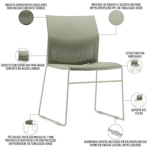 Material do encosto e assento injetado em Polipropileno (PP), na tonalidade Verde.