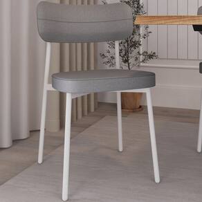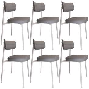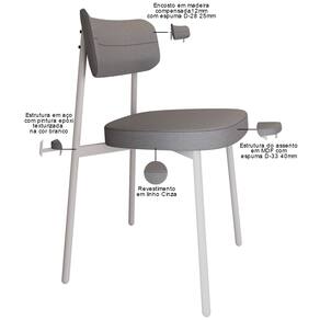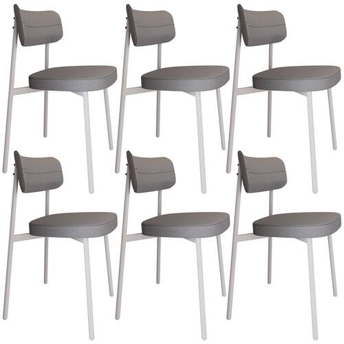 Kit 06 Cadeiras Estofada Para Sala de Jantar Astrid Branco C01 Linho Cinza - Lyam Decor