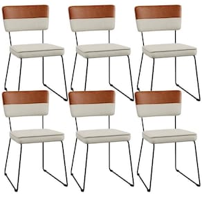 O espetáculo que é o Kit 06 Cadeiras Decorativas Allana L02 Faixa Couríssimo Camel Linho Champagne - Lyam Decor vem para agregar ainda mais valor na decoração da sua casa. Sua estrutura em aço remete-nos ao estilo industrial que surgiu em Nova York no século XX, já o assento e encosto estofados trazem equilíbrio e conforto criando a combinação perfeita para o ambiente.