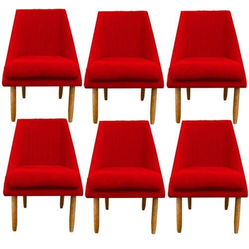 Kit 06 Cadeiras Para Sala De Jantar Ana Pés Palito Suede Vermelho - D'classe Decor