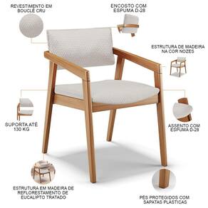 O Kit 06 Cadeiras Para Sala de Jantar Estar Living Giorgia B04 Bouclê Cru, da Lyam Decor, é perfeito para adicionar um toque moderno à sala de jantar. Com sua estrutura em madeira maciça envernizada, ela traz durabilidade e estilo para o ambiente. O assento e o encosto estofados e revestidos com tecidos alto padrão proporcionam conforto durante as refeições, além de serem fáceis de limpar.