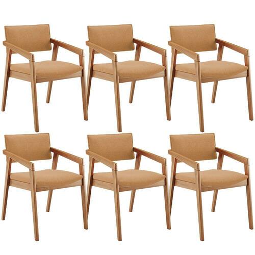 O Kit 06 Cadeiras Para Sala de Jantar Estar Living Giorgia B04 Bouclê Mostarda, da Lyam Decor, é perfeito para adicionar um toque moderno à sala de jantar. Com sua estrutura em madeira maciça envernizada, ela traz durabilidade e estilo para o ambiente. O assento e o encosto estofados e revestidos com tecidos alto padrão proporcionam conforto durante as refeições, além de serem fáceis de limpar.