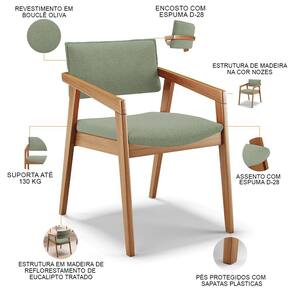 O Kit 06 Cadeiras Para Sala de Jantar Estar Living Giorgia B04 Bouclê Oliva, da Lyam Decor, é perfeito para adicionar um toque moderno à sala de jantar. Com sua estrutura em madeira maciça envernizada, ela traz durabilidade e estilo para o ambiente. O assento e o encosto estofados e revestidos com tecidos alto padrão proporcionam conforto durante as refeições, além de serem fáceis de limpar.