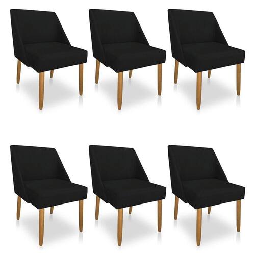Kit 06 Cadeiras Poltona Juliana Suede Preto Pés Palito Castanho - Blush