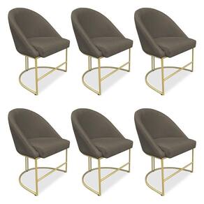 Kit 06 Cadeiras Poltrona De Jantar Bela Suede Marrom Rato Base Metálica Industrial Dourado - Pallazio