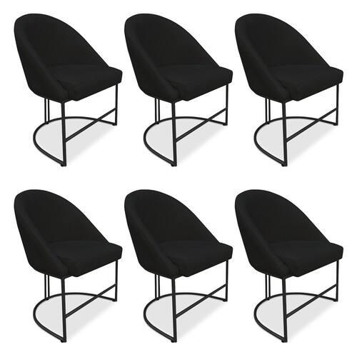 Kit 06 Cadeiras Poltrona de Jantar Bela Suede Preto Base Metálica Industrial Preto - Pallazio