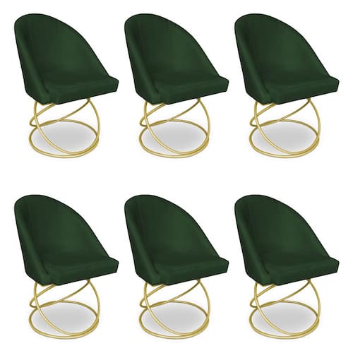 Kit 06 Cadeiras Poltrona de Jantar Bela Suede Verde Base Metálica Luxo Dourado - Pallazio