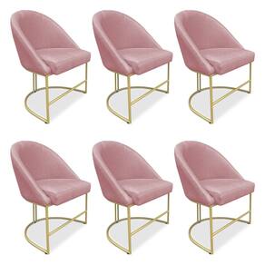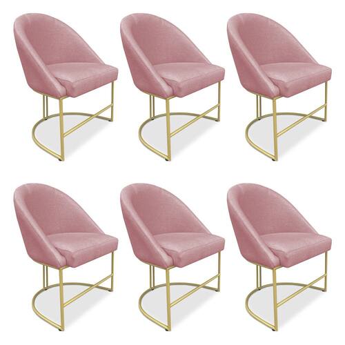 Kit 06 Cadeiras Poltrona de Jantar Bela Veludo Base Metálica Industrial Dourado - Pallazio - Rosê
