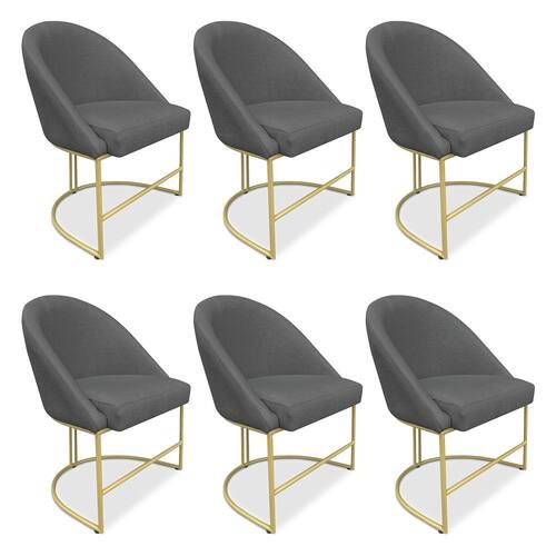 Kit 06 Cadeiras Poltrona de Jantar Bela Veludo Base Metálica Industrial Dourado - Pallazio - Grafite