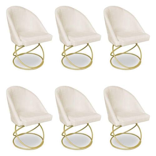 Kit 06 Cadeiras Poltrona De Jantar Bela Veludo Base Metálica Luxo Dourado - Pallazio Cor Preto