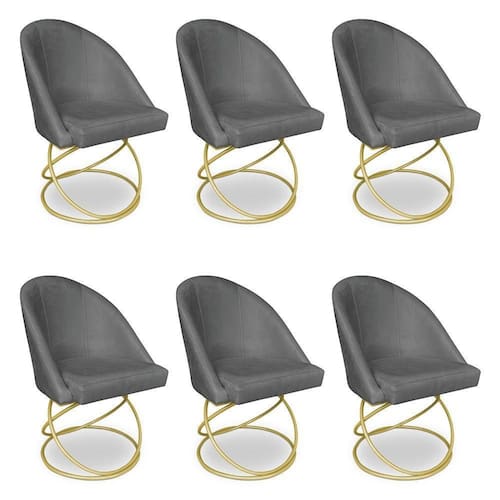 Kit 06 Cadeiras Poltrona De Jantar Bela Veludo Grafite Base Metálica Luxo Dourado - Pallazio