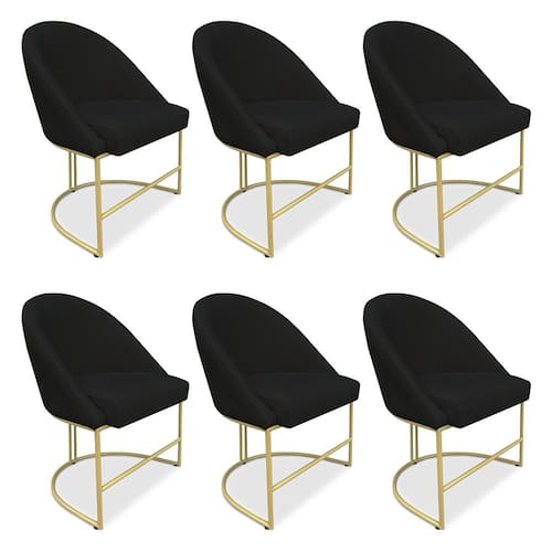 Kit 06 Cadeiras Poltrona de Jantar Bela Veludo Preto Base Metálica Industrial Dourado - Pallazio