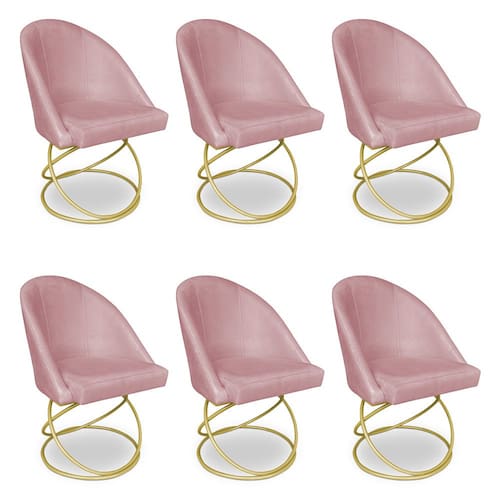 A base metálica em dourado confere à cadeira um aspecto industrial moderno, proporcionando um contraste encantador com o tecido em Veludo. Essa mistura de materiais agrega um ar contemporâneo e luxuoso ao ambiente, além de assegurar estabilidade e durabilidade à peça. O acabamento cuidadoso realça ainda mais a beleza e a qualidade do produto.