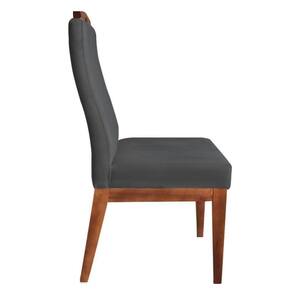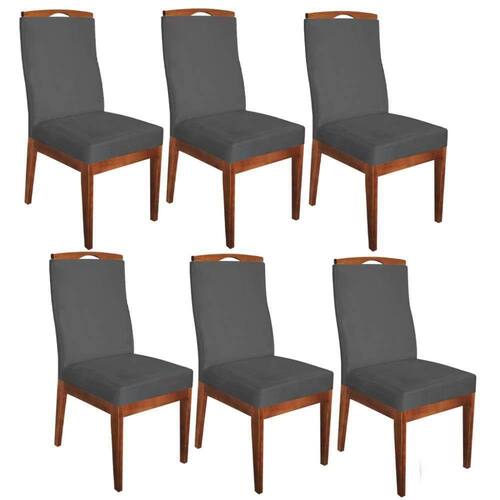 Conjunto 06 Cadeiras Para Sala De Jantar Ricco Estofada Madeira Carvalho Veludo Cinza Chumbo Escuro - Ahazzo Móveis Cor Cinza