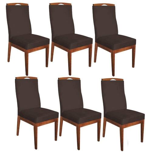 Conjunto 06 Cadeiras Para Sala De Jantar Ricco Estofada Madeira Carvalho Veludo Marrom Escuro - Ahazzo Móveis Cor Marrom