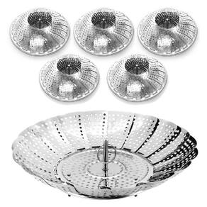 06 Cestos Cozimento a Vapor Inox Cozinha Legumes na Panela 24cm Produto muito prático e de fácil utilização, valoriza seus preparos na cozinha MODO DE USO Cesto de Cozinhar no Vapor - Inox Ele se adapta em qualquer panela. Adicione água no fundo, que não passe pelos furinhos do cesto. Coloque os legumes, tampe e em 5 a 10 minutos depende do legume terá legumes cozidos no vapor sem perder a cor e nem nutrientes. Lembrando os legumes não entrarão em contato com a água diretamente, pois os cestos possuem Pés que não permitem o contato CARACTERISTICAS DO PRODUTO Ideal para cozinhar legumes no vapor Prático e higiênico Preserva nutrientes, vitaminas e sais minerais dos alimentos Fácil de usar Serve para qualquer panela Marca: Kehome Material: Aço Inox DIMENSÕES INDIVIDUAIS Diâmetro: 16 cm Fechado e 24 cm Aberto Altura: 6 cm Peso Aprox.: 250g Marca: Não Informado
