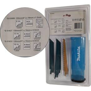 Kit com 6 Lâminas 2x D-51627 - Lâmina de Serra Sabre para Metal 152mm 14 Dentes D-51627 Makita 2x D-51633 - Lâmina de Serra Sabre para Metal 6 X 18 Dentes D-51633 Makita 2x D-53089 - Lâmina de Serra Sabre para Madeira 150mm 18 Dentes D-53089 Makita