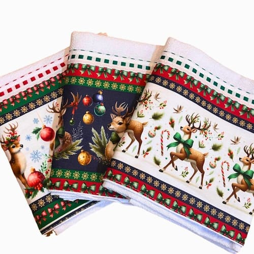 Estampas Festivas e Modernas - Com barrado decorado e estampas exclusivas inspiradas no Natal, nossos panos de prato trazem um toque de alegria e sofisticação para sua decoração de fim de ano. Selecione entre uma variedade de designs encantadores que capturam a essência do Natal e tornam sua cozinha ainda mais acolhedora.