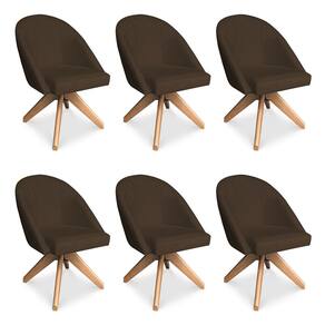 Kit 06 Poltronas Cadeira Giratória Bela Suede Base de Madeira - Pallazio - Marrom