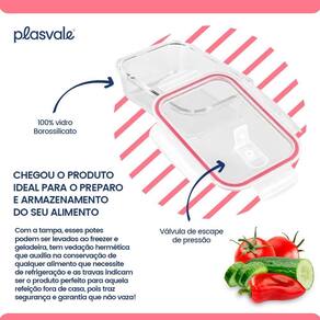 Praticidade no dia a dia combinado com a versatilidade que o vidro pode lhe oferecer Chegou o produto ideal para o preparo e armazenamento do seu alimento. Com a tampa, esses potes podem ser levados ao freezer e geladeira, tem vedação hermética que auxilia na conservação de qualquer alimento que necessite de refrigeração e as travas indicam ser o produto perfeito para aquela refeição fora de casa, pois traz segurança e que não vaza. O corpo, de vidro borossilicato, desde que sem a tampa, possibilita o preparo de alimentos no forno ou microondas, pois é resistente à altas temperaturas. Não perca a oportunidade e adquira o Pote de vidro hermético da Plasvale agora mesmo Dimensões: 15.4 x 11,4 x 5,5cm Comprimento x Largura x Altura Peso: 0,398 Kg Capacidade: 370 ml Corpo resistente à temperaturas entre -20 à 400ºC Recomendações de Uso: - Adequado para Microondas Sem a Tampa . - Permitido para Máquina de Lavar Sem a Tampa . - Apropriado para Forno Sem a Tampa . - Permitido para Freezer e Geladeira. Dicas Loja do Café : Lave antes do primeiro uso e não utilize produtos abrasivos. Lavar sempre com esponja macia e detergente neutro. Marca: Não Informado
