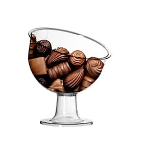 Taça inclinada ou Boca torta com pedestal, fabricada em poliestireno PS, moderna e resistente, utilizada e recomendada por profissionais de sucesso. Qualidade e sofisticação em suas festas e eventos, para servir sobremesas, salada de frutas, bolo gelado, gelatina, marshmallow, serviços de bomboniere, servir capsulas de café e muito mais.