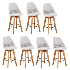 Kit 07 Banquetas Alta Maya Giratória Com Encosto Linho Bege Claro E Almofada Zigzag - Gat Magazine Banqueta Maya Giratória - GAT MAGAZINE A Banqueta Maya possui assento e pés em madeira eucalipto com sistema giratório! Os pés contam com um reforço que proporciona um suporte de peso de até 120 Kgs.O assento é revestido com espuma D-23. Além de bonita e charmosa, vai trazer para seu ambiente elegância e proporcionará conforto para sua família e amigos nos momentos de lazer.