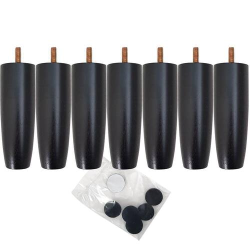 Qualidade, praticidade e resistência. #Ideal para Cama Box de Casal #Kit 7 Pés em Madeira #Altura de 13cm Garantia: 90 Dias / Peso: 1.150 Kg / Cor: Preto / Ref: 79DM09PTX7 Dimensões: 3cm (C) x 4,5cm (L) x 13cm (A) Cuidados: Não lavar com materiais abrasivos. Material: - Madeira de Eucalipto com Umidade de 15% : Madeira 100% reflorestada. - Prisioneiro de aço zincado em amarelo trifásico; - Tinta PU a Base de Solventes. - Feltro Emborrachado. O conjunto é ideal para cama de casal e possui rosca padrão, que se adapta a qualquer tipo de cama box. Os 7 pés possuem feltro para serem fixados na base, protegendo e evitando arranhar e riscar seu piso ou laminado. Podendo ser utilizado em hotéis ou até mesmo na sua casa.