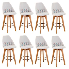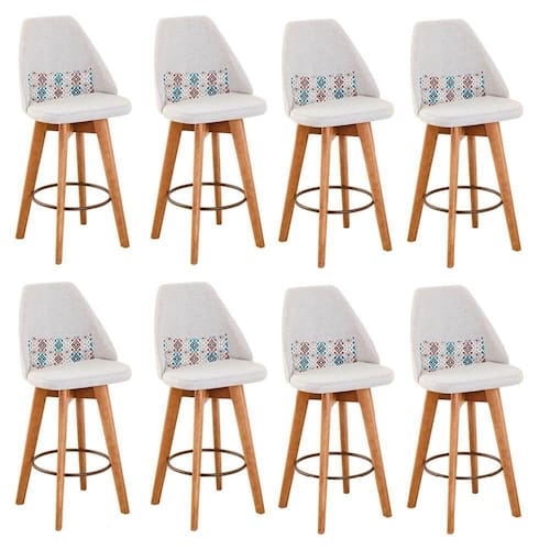 Kit 08 Banquetas Alta Maya Giratória Com Encosto Gourmet Linho Bege E Almofada Mosaico - Aurora Line