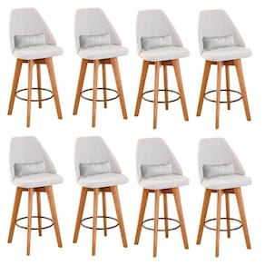Kit 08 Banquetas Alta Maya Giratória Com Encosto Gourmet Linho Bege e Almofada Sintético Branco - Aurora Line - Blush