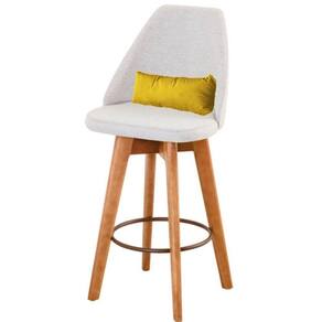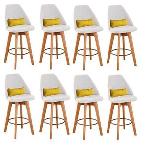 Kit 08 Banquetas Alta Maya Giratória Com Encosto Linho Bege Claro E Almofada Sintético Amarelo - Gat Magazine