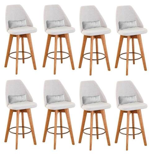 Kit 08 Banquetas Alta Maya Giratória Com Encosto Gourmet Linho Bege E Almofada Corino Branco - Gat Magazine